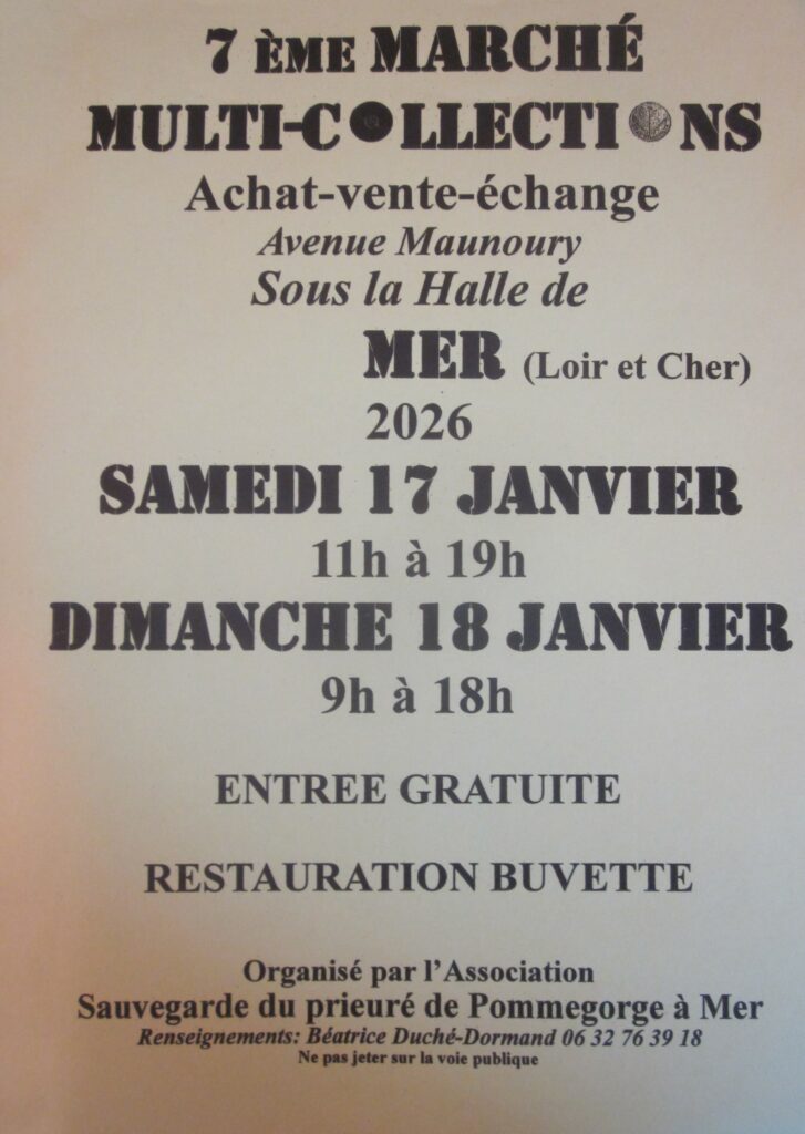- Mer – Samedi 17 janvier 2026 de 11h à 19h et dimanche 18 janvier 2026 de 9h à 18h. Sous la halle. Entrée gratuite Buvette, petite restauration